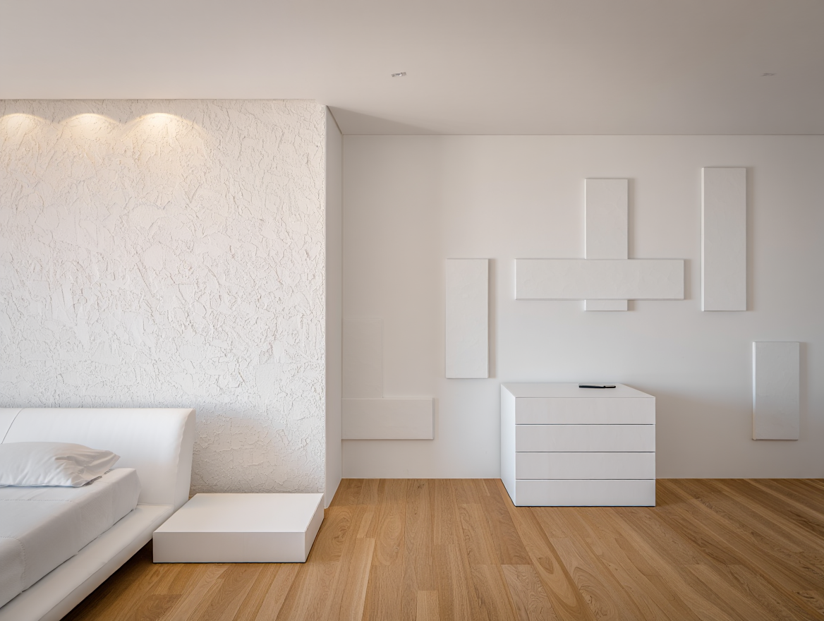 Белый интерьер строится не на цвете, а на фактуре. Без текстуры он теряет характер, превращается в безжизненное пространство. Фактура делает белый объемным, теплым, выразительным. Через рельеф проявляется свет, появляются тени, глубина.