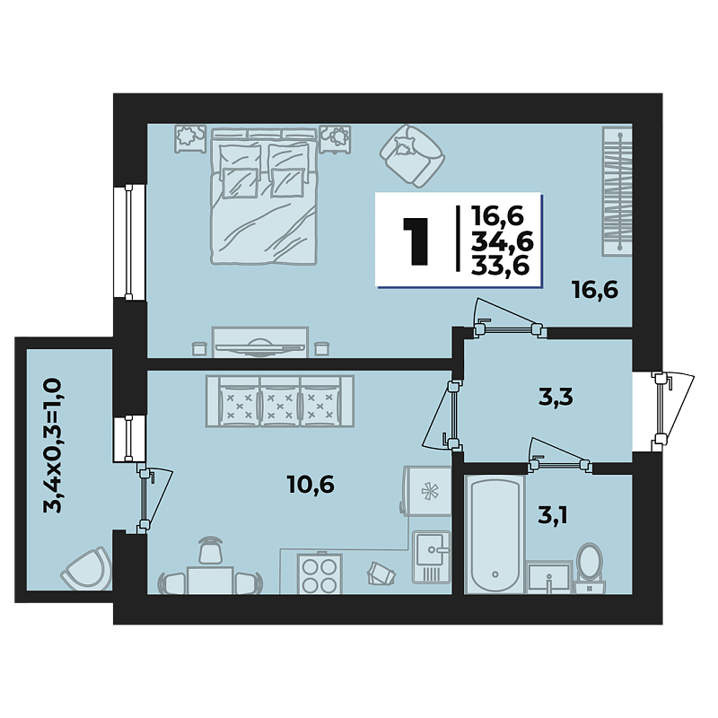 16.6 м² -