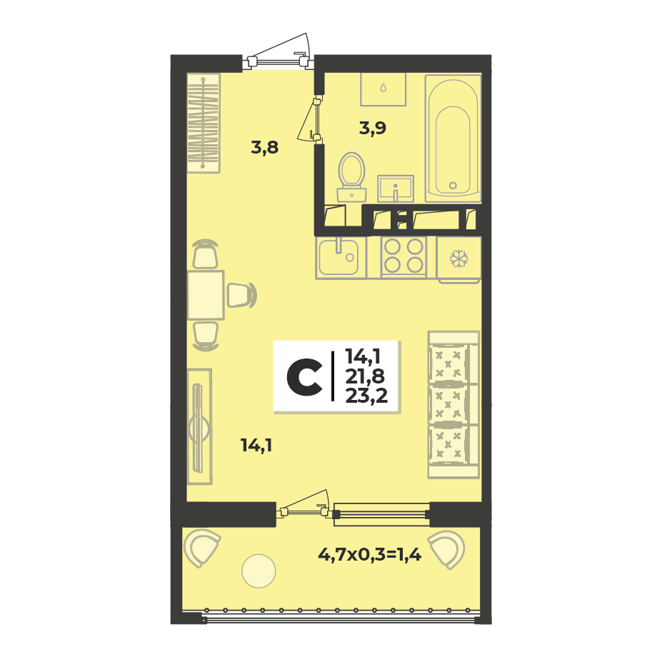 4 363 400 ₽ 188 078 ₽/м²